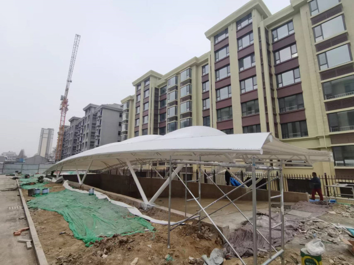 膜结构出入口又叫张拉膜结构,是21世纪最具代表性的建筑形式。打破了纯直线建筑风格的模式,以其独有的优美曲面造型,简洁、明快、刚与柔、力与美的完美组合,同时给建筑设计师提供了更大的想象和创造空间。