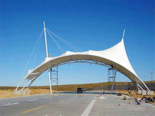 膜结构出入口又叫张拉膜结构,是21世纪最具代表性的建筑形式。打破了纯直线建筑风格的模式,以其独有的优美曲面造型,简洁、明快、刚与柔、力与美的完美组合,同时给建筑设计师提供了更大的想象和创造空间。