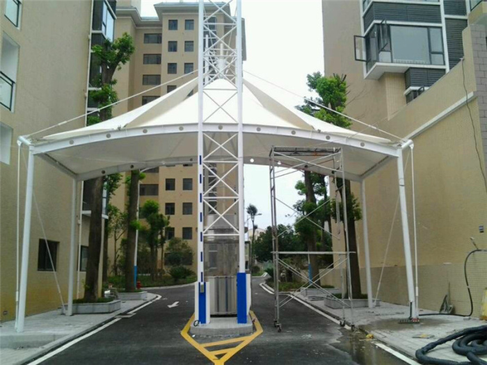 膜结构出入口又叫张拉膜结构,是21世纪最具代表性的建筑形式。打破了纯直线建筑风格的模式,以其独有的优美曲面造型,简洁、明快、刚与柔、力与美的完美组合,同时给建筑设计师提供了更大的想象和创造空间。