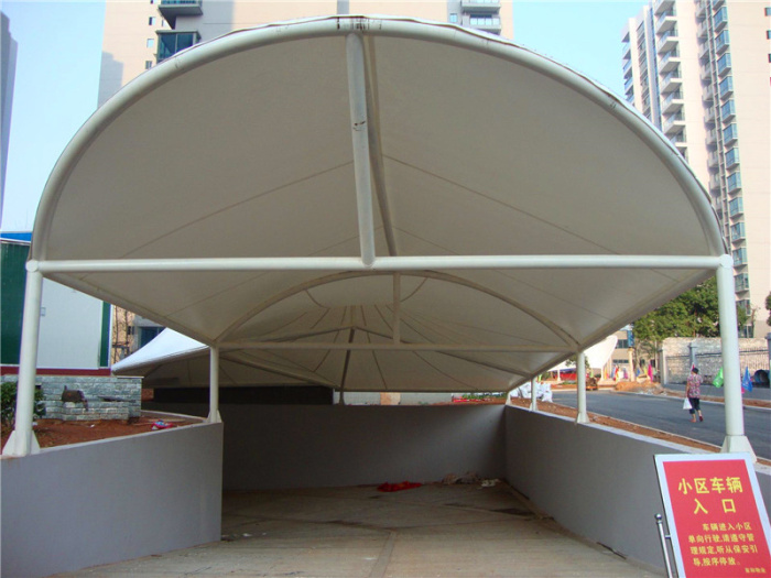 膜结构出入口又叫张拉膜结构,是21世纪最具代表性的建筑形式。打破了纯直线建筑风格的模式,以其独有的优美曲面造型,简洁、明快、刚与柔、力与美的完美组合,同时给建筑设计师提供了更大的想象和创造空间。