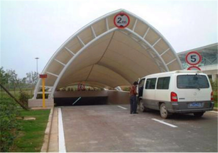 膜结构出入口又叫张拉膜结构,是21世纪最具代表性的建筑形式。打破了纯直线建筑风格的模式,以其独有的优美曲面造型,简洁、明快、刚与柔、力与美的完美组合,同时给建筑设计师提供了更大的想象和创造空间。