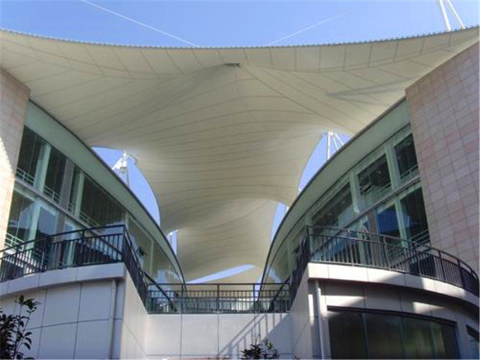 膜结构出入口又叫张拉膜结构,是21世纪最具代表性的建筑形式。打破了纯直线建筑风格的模式,以其独有的优美曲面造型,简洁、明快、刚与柔、力与美的完美组合,同时给建筑设计师提供了更大的想象和创造空间。