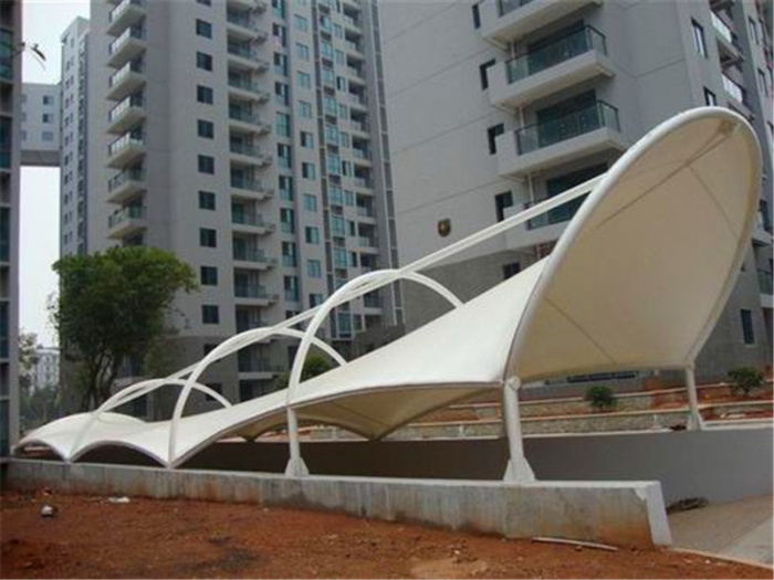 膜结构出入口又叫张拉膜结构,是21世纪最具代表性的建筑形式。打破了纯直线建筑风格的模式,以其独有的优美曲面造型,简洁、明快、刚与柔、力与美的完美组合,同时给建筑设计师提供了更大的想象和创造空间。