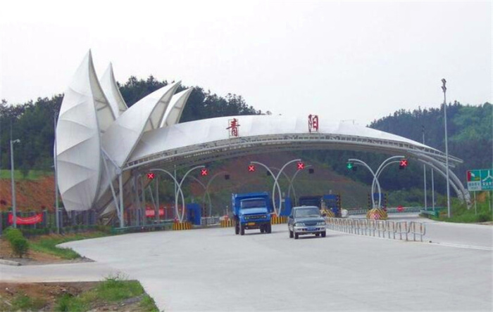 膜结构出入口又叫张拉膜结构,是21世纪最具代表性的建筑形式。打破了纯直线建筑风格的模式,以其独有的优美曲面造型,简洁、明快、刚与柔、力与美的完美组合,同时给建筑设计师提供了更大的想象和创造空间。